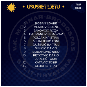 🔹U organizaciji VK Solaris održao se jednodnevni turnir u kategoriji Mlađih Nada, pod nazivom “Ususret ljetu”. Na natjecanju je sudjelovalo ukupno šest ekipa: Solaris, KPK, Jadran, Zadar, Cavtat te naša malenkost.